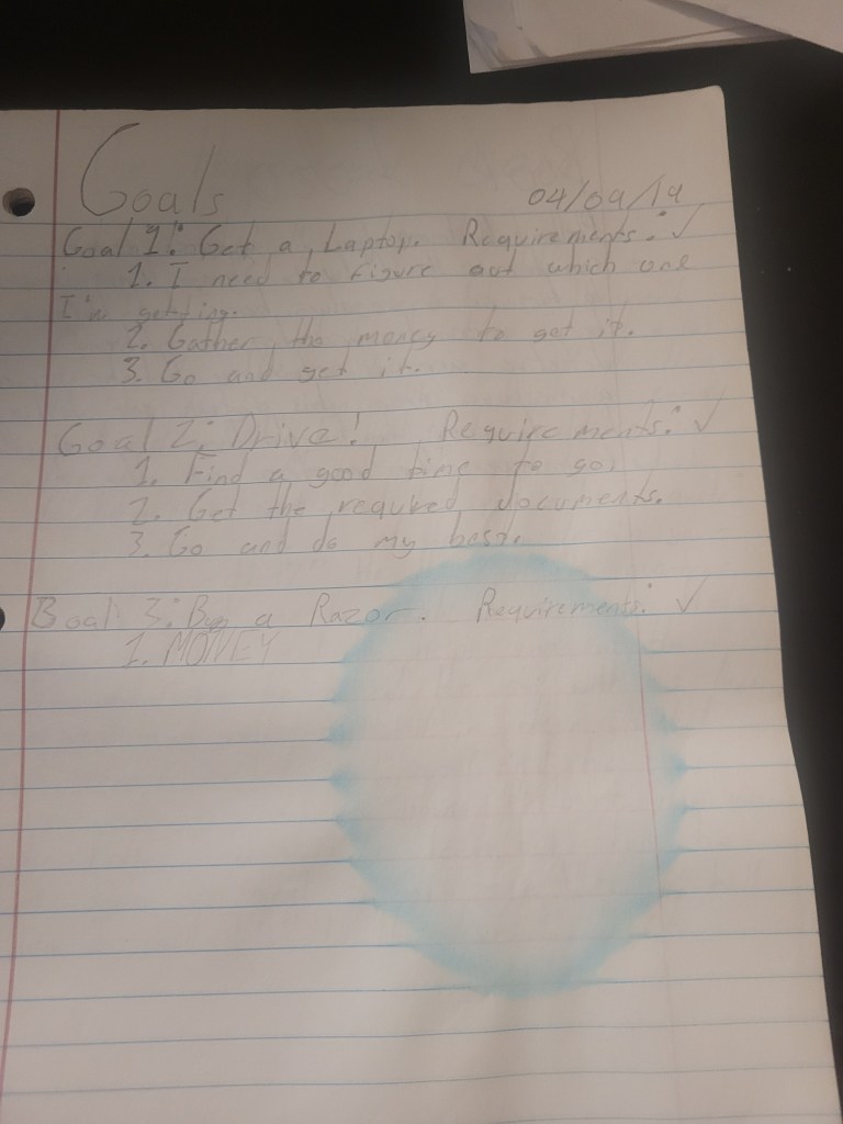 This is a very important entry because it was around the time where I was deciding to choose my own path in life. I had realized that no one would help me to become the person I wanted to be, so I had to help myself. I was self-motivated, trying to become the person I wanted to be. I have an anecdote about the laptop related to my father, but I will save that for another time as well. Either way, I made lists about things I wanted to get done and how to accomplish them. Then, I went and did it. I’m proud of myself for that.
