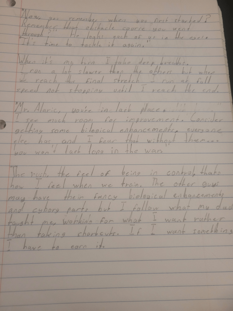 Surprisingly, I found much less than I thought I would. My notebooks were filled with much less journal entries, and many more stories and doodles and church notes. Pages upon pages of chapters of books I never finished. Hundreds of random doodles ranging from comic book characters to strange animals to abstract shapes. Lines upon lines of notes from church services and their implications. I did not get a laptop until September of 2019 when I was 16, so for years and years, I simply wrote. I filled three and a half notebooks with my writing, and I’m sure there are plenty more loose papers somewhere in my closet too.